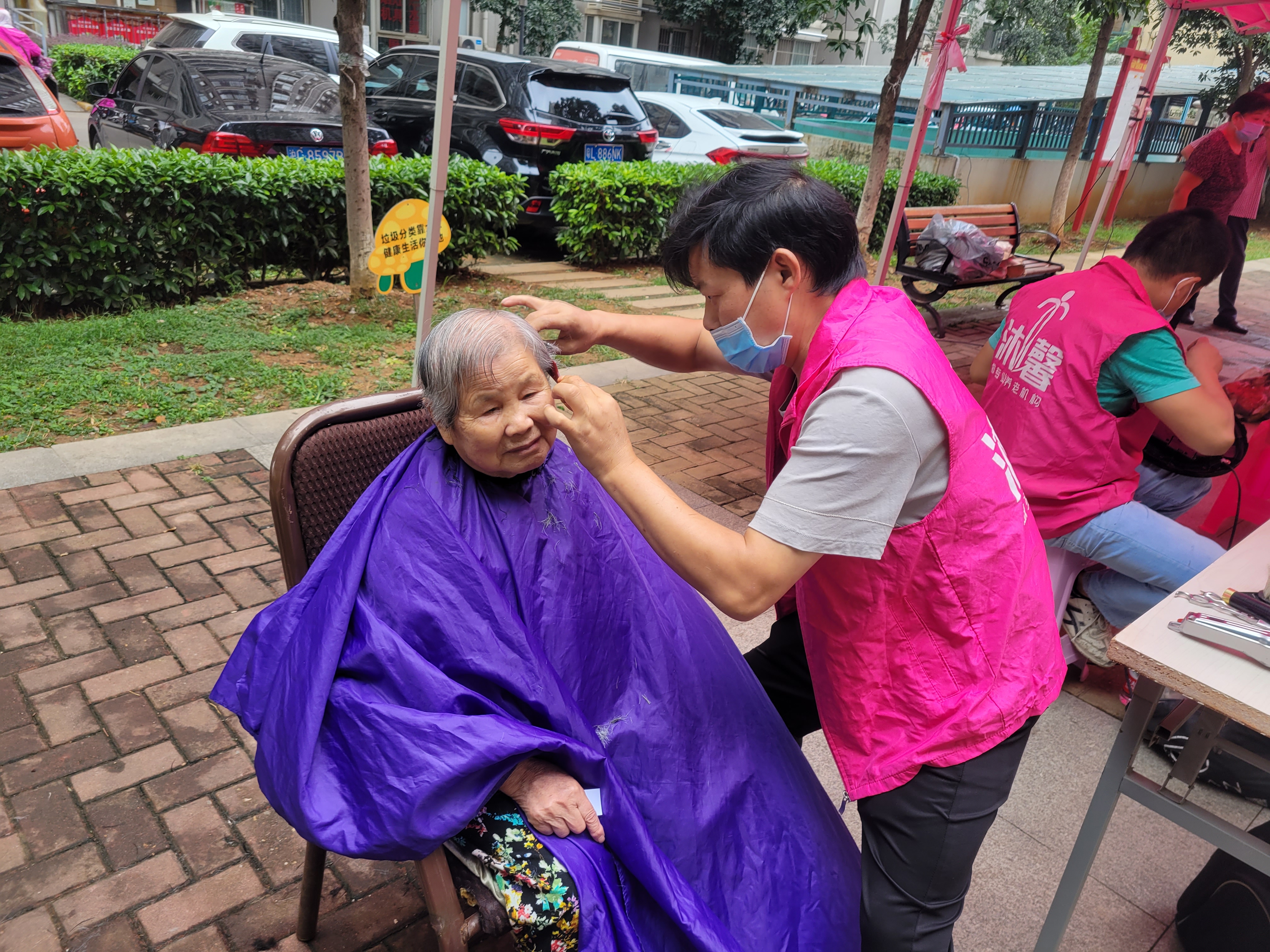 活動(dòng)中,一名頭發(fā)花白,坐著輪椅的老人來(lái)到理發(fā)服務(wù)點(diǎn),現(xiàn)場(chǎng)工作人員迅速為其取號(hào),安排理發(fā)服務(wù),老人表示在家樓下就能享受到實(shí)實(shí)在在、貼近民心、便民便利的服務(wù),深深的感受到了社區(qū)大家庭的溫暖。小溫暖、大能量,其他服務(wù)項(xiàng)目也深受居民的喜愛(ài),均排起了長(zhǎng)長(zhǎng)的隊(duì)伍,當(dāng)天現(xiàn)場(chǎng)服務(wù)社區(qū)居民200余人,反響熱烈。